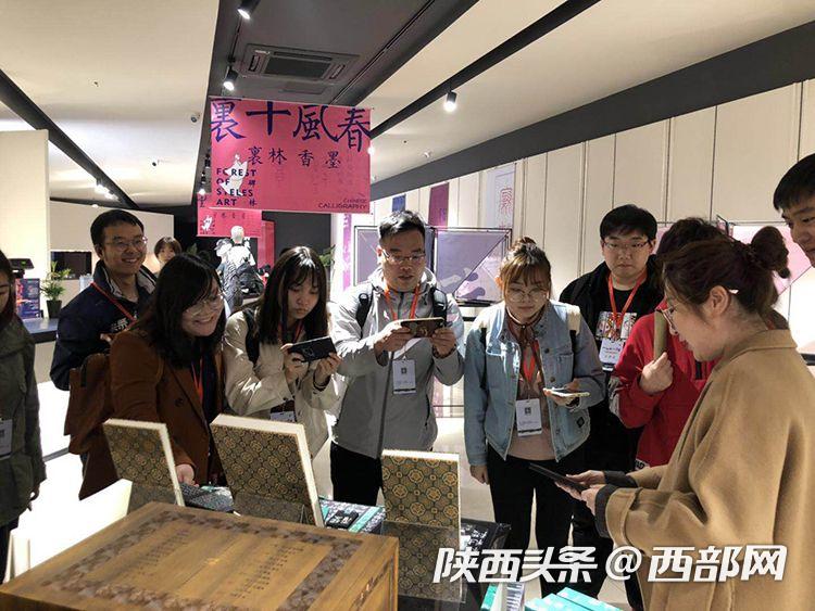 “清明祭初祖 文脉传华夏”网络媒体采访团来到西安碑林博物馆的文创店。