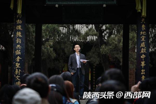 陕西师范大学副教授王伟现场讲授汉字的由来。
