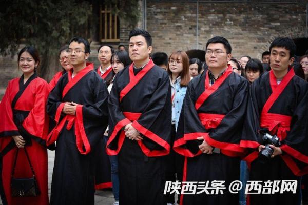 部分采编人员体验穿汉服,按汉礼祭拜仓颉。