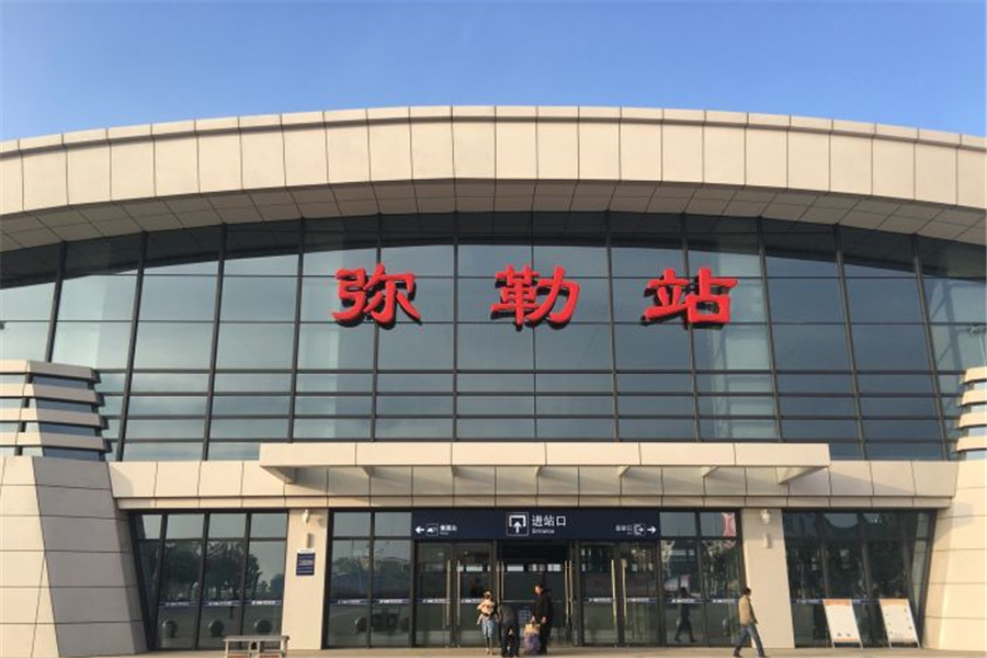 弥勒站位于红河哈尼族彝族自治州弥勒市,是云桂铁路云南段主要中间站之一。弥勒站为三等站,于2016年12月28日正式投入使用,有10股到发线,站房总面积3497.4平方米。现在,弥勒站每日办理客运作业的动车组列车,主要开往南宁东、桂林北、广州南、北海、昆明、大理、丽江方向。