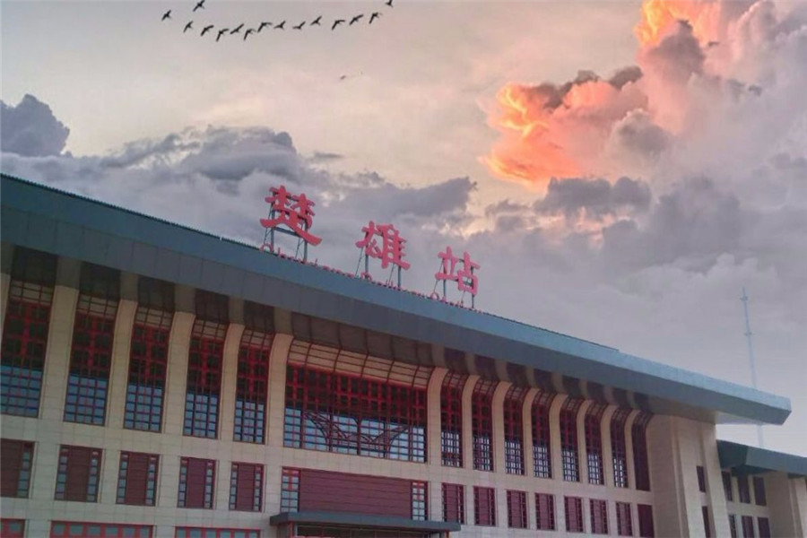 楚雄站,原名楚雄北站,为楚雄市高铁站,于2018年7月1日随着昆楚铁路开通正式投入使用。楚雄站的开通也标志着楚雄正式跨入高铁时代,与昆明、大理形成一小时交通生活圈。楚雄站位于楚雄市东瓜镇车坪社区,占地约1万平方米,为“三站台七线”,能同时容纳5000人聚集乘车。站房建筑风格浓缩了楚雄彝族地方特色,屋面覆盖着清灰瓦,站房色调以红色为主色。