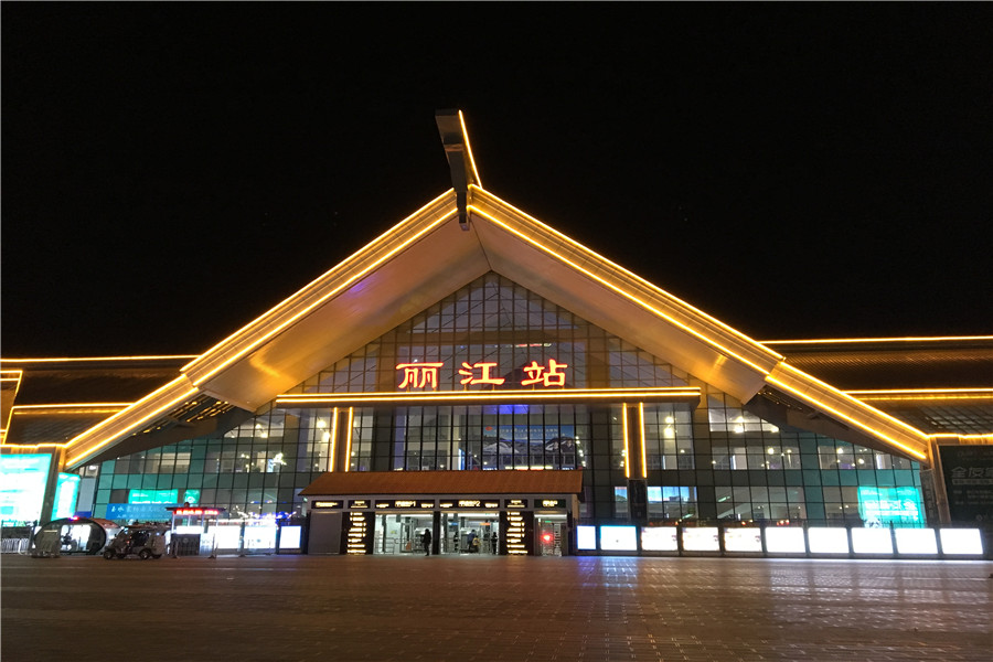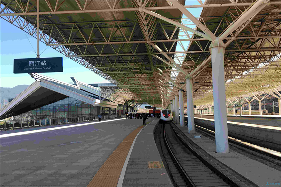丽江站位于云南省丽江市玉龙县黄山镇上吉路。于2010年1月1日投入使用。2019年1月5日,由丽江发往昆明的首列和谐号动车D8784次准时从丽江站驶出,这标志着丽江进入了动车时代。