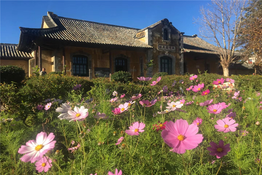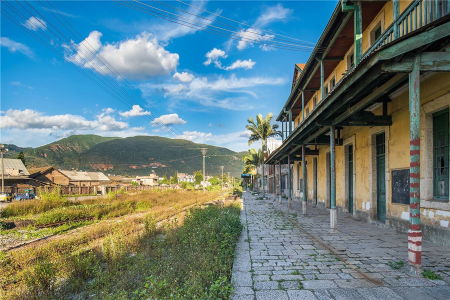 走进位于红河哈尼族彝族自治州建水古城的小火车临安站,黄墙红瓦的法式车站建筑,在蓝天白云的映衬下熠熠生辉。它建于1928年,位于米轨铁路蒙宝线上,融合了上世纪二十年代中、法建筑风格。