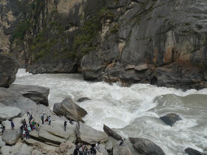 这是一段可与三峡媲美的峡谷,两岸山崖怪石嶙峋、巍峨雪峰直指云霄;浑厚的江水自由澎湃、滔天的波浪振聋发聩;江中怪石犬牙交错、险滩密布;湍流飞瀑中似见猛虎呼啸过江、似闻山中虎啸猿啼。