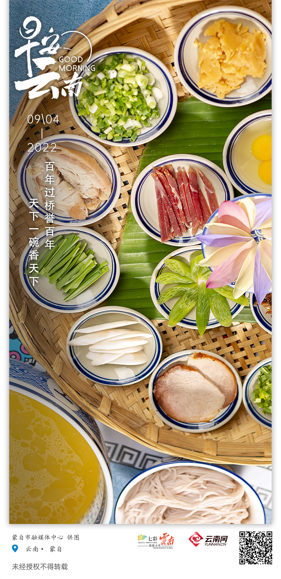 “百年过桥誉百年,天下一碗香天下。” 无论对于蒙自或是云南而言,过桥米线已不仅仅是饮食文化那么简单,它是一种文化的传承,是一种历史的牵引,是一份对历史的追忆。
