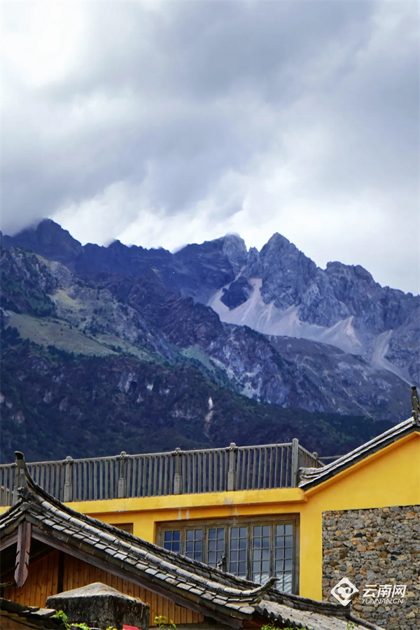 驶过一段砂石路,在6月的水汽氤氲中,来到丽江市玉龙县白沙乡玉湖村,石墙、木架、青瓦次第入眼,这里是观赏玉龙雪山的绝佳地理位置。