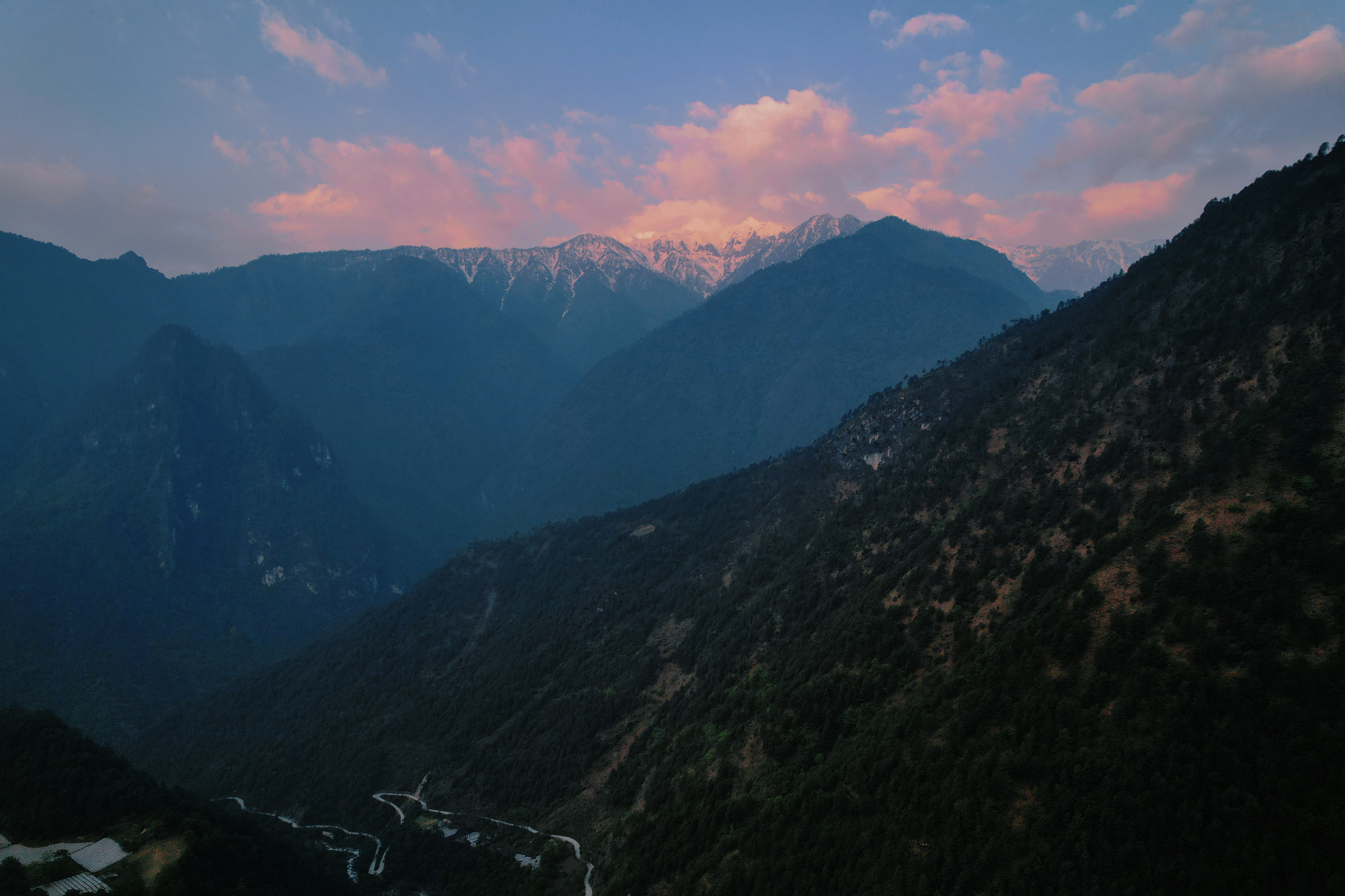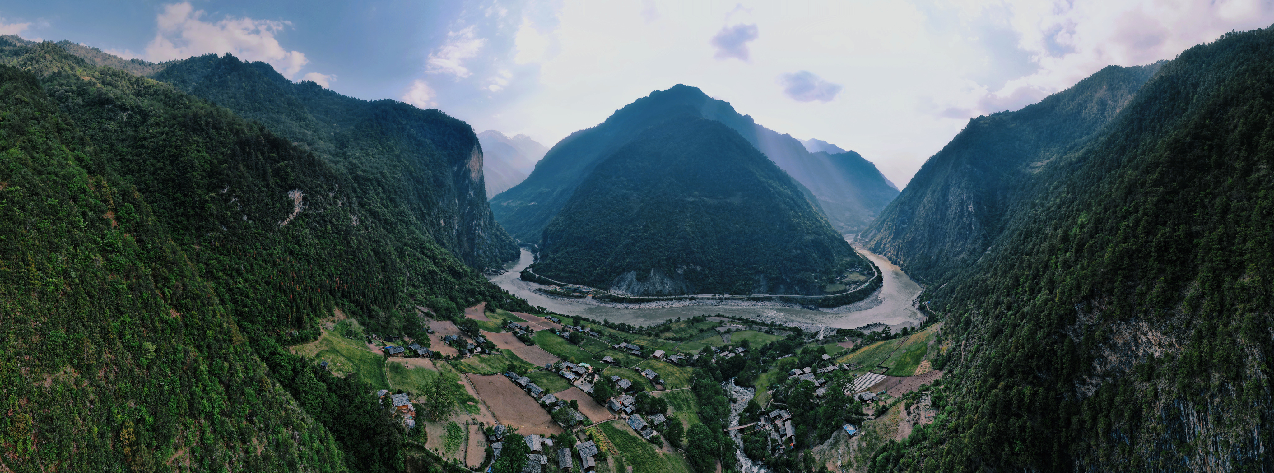 江声隐隐闷雷入寨,雪山巍峨峡谷炊烟。