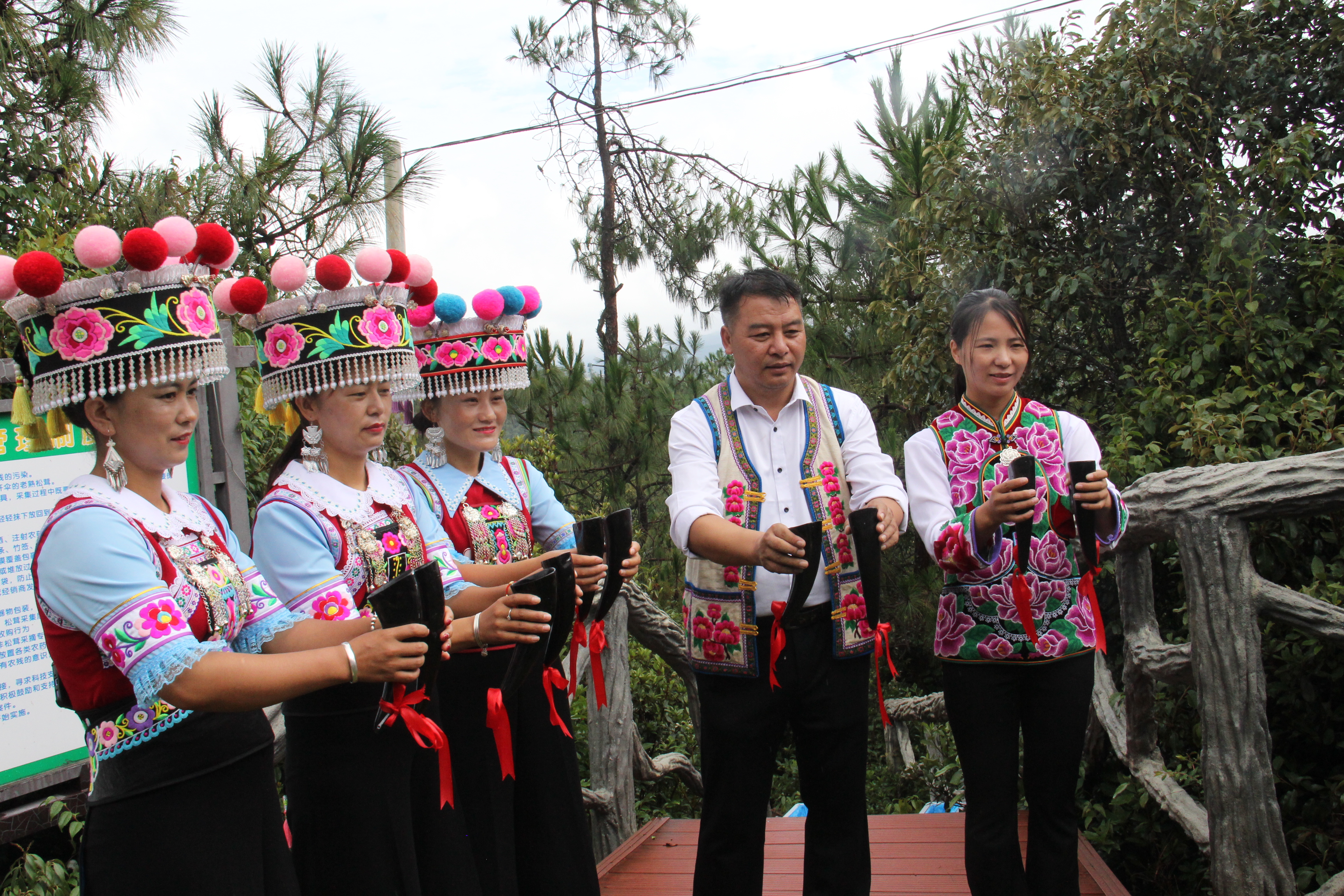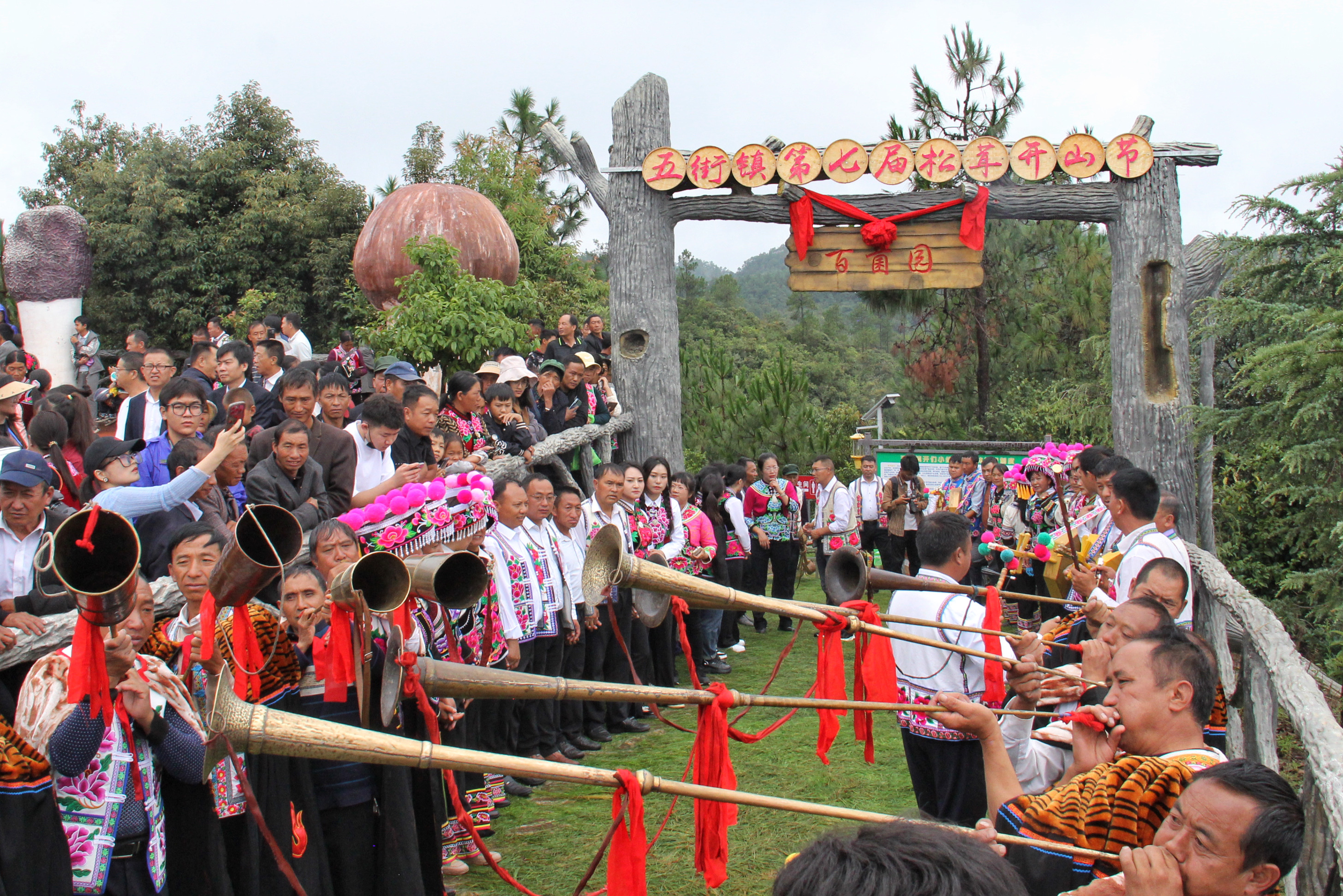 3日早晨,在南华县五街镇美丽的早晨里呼吸着清新的空气,感受着阳光的温暖,松茸、鸡枞、牛肝菌、青头菌等各种各样的“山间精灵们”如雨后春笋般破土而出。随着过山号的响起,各方的人们相聚于此,跟随毕摩的脚步进入百菌园采摘松茸。