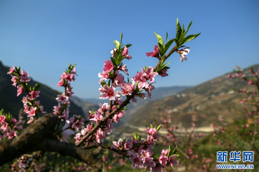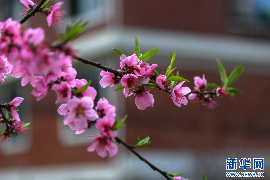 鲜红的桃花绽放(3月17日摄)。新华网发(唐应平 摄)
