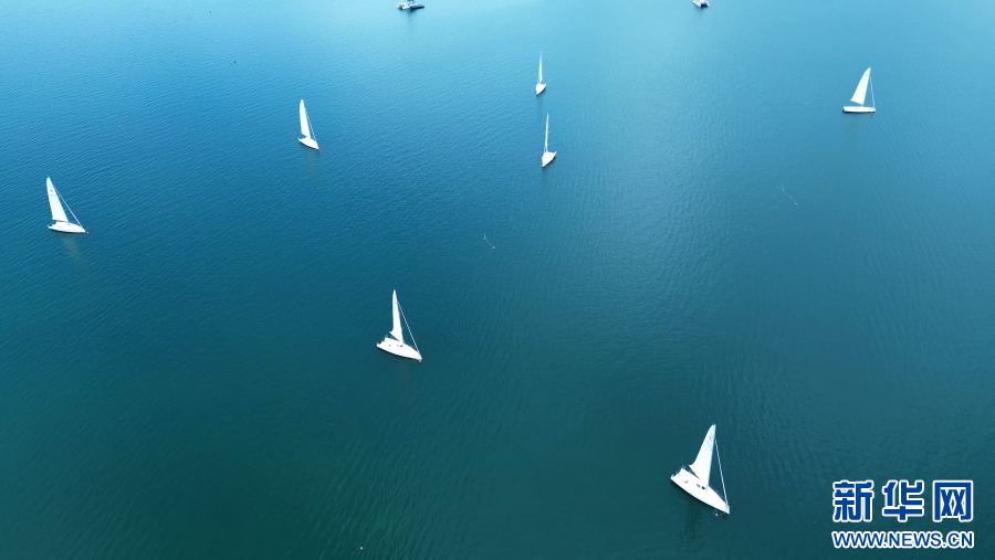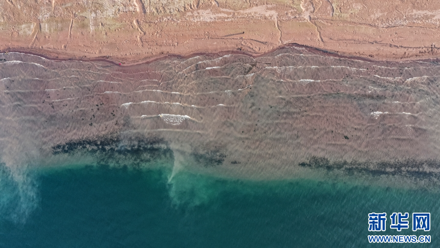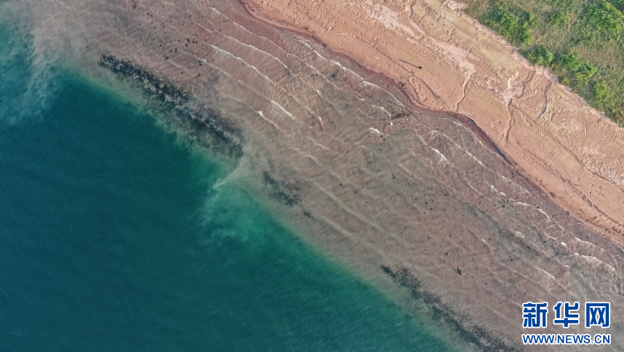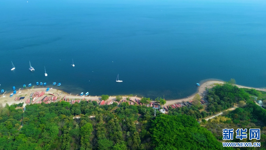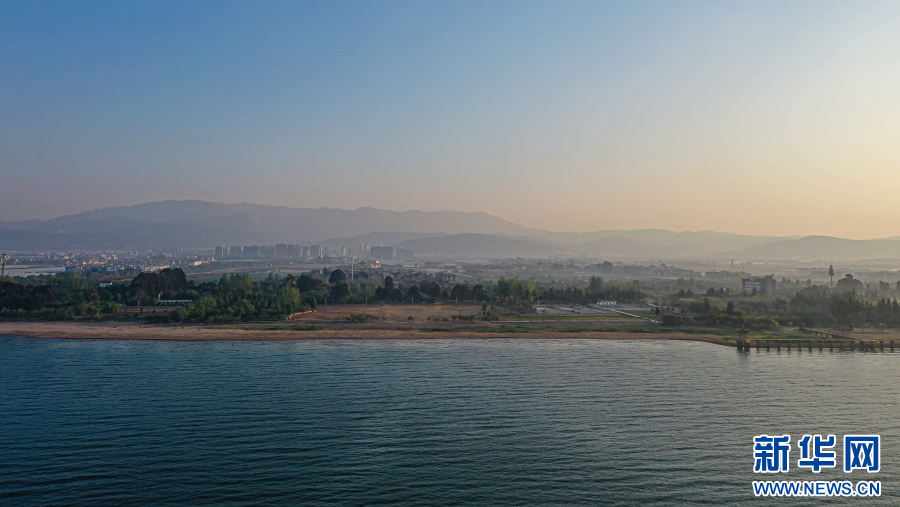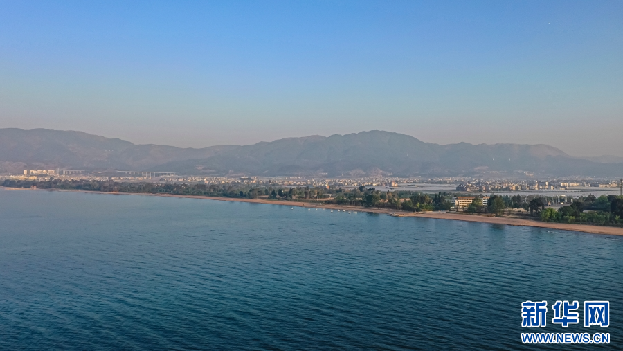 航拍抚仙湖,碧波荡漾湖水拍岸(4月4日摄)。新华网发(杨洪龙 摄)