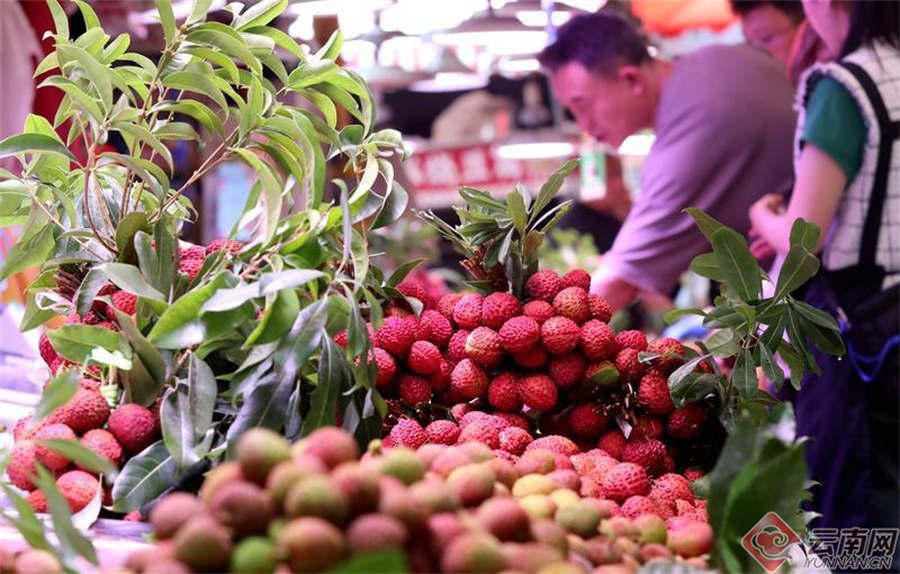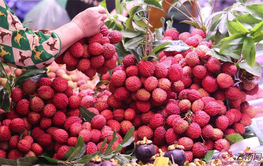 在大观篆新农贸市场,玉溪元江荔枝王上市成为当下的"水果之王”。