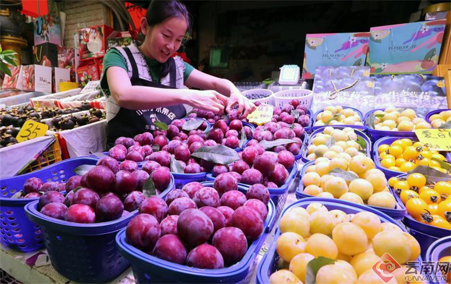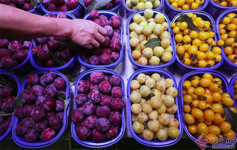 在大观篆新农贸市场,昆明地产鲜李开始大量上市。