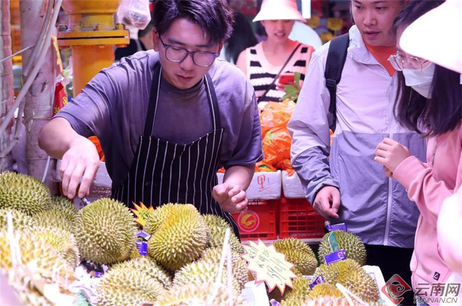 在大观篆新农贸市场,来自泰国的榴莲大量上市,价格“亲民”,让市民和游客大呼“实现了榴莲自由”。