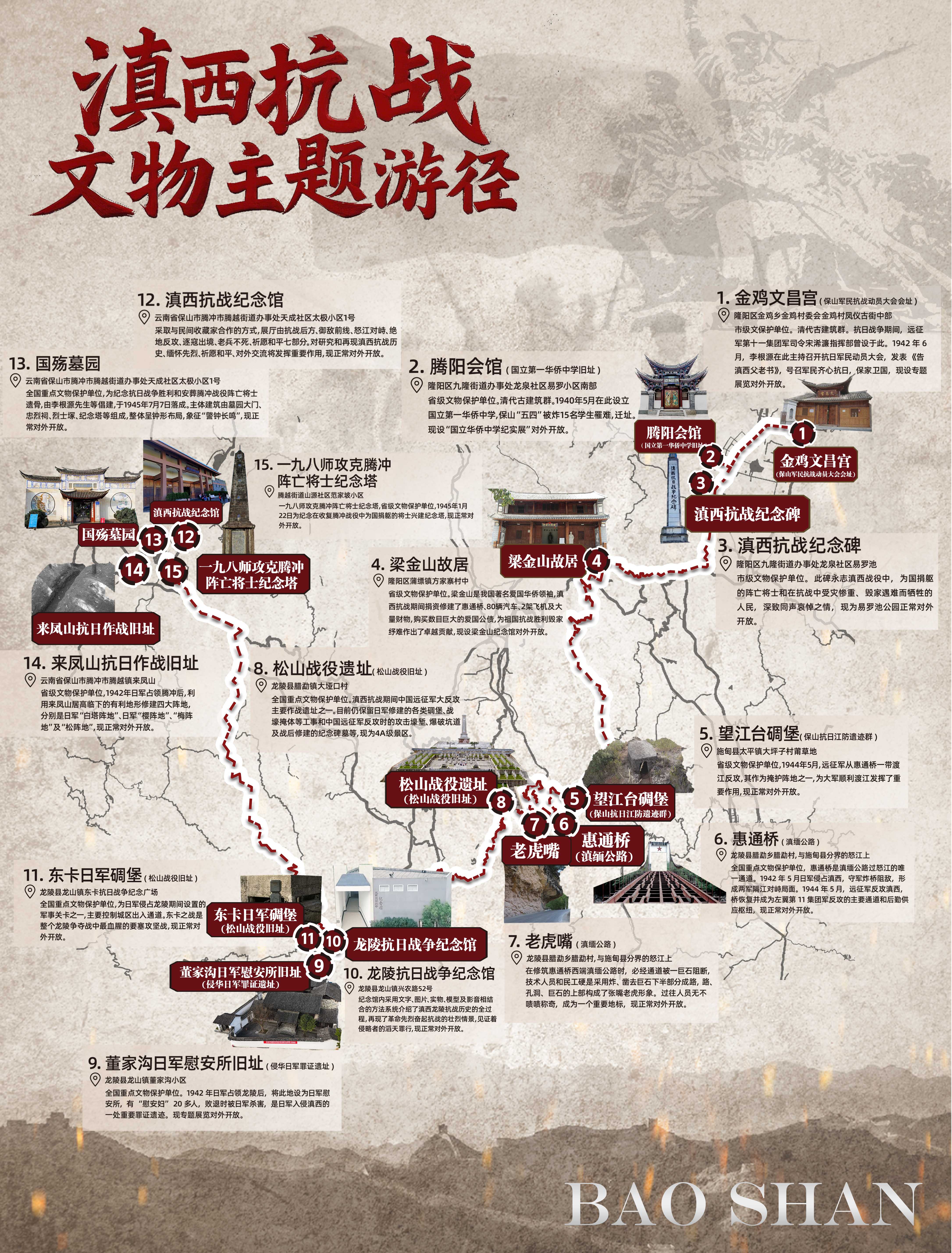 2025年4月17日,国家文物局办公室、文化和旅游部办公厅、国家发展改革委办公厅联合发布《关于推介2024年度优秀文物主题游径的通知》,全国共有31条游径确定为优秀文物主题游径。由云南省文物局选送的“滇西抗战文物主题游径”成功入选,成为展示我省厚重历史文化、推动文旅深度融合的新名片。