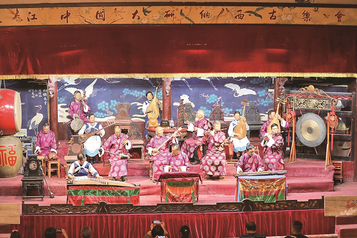 丽江大研纳西古乐会在演奏古乐 记者 吴星 摄