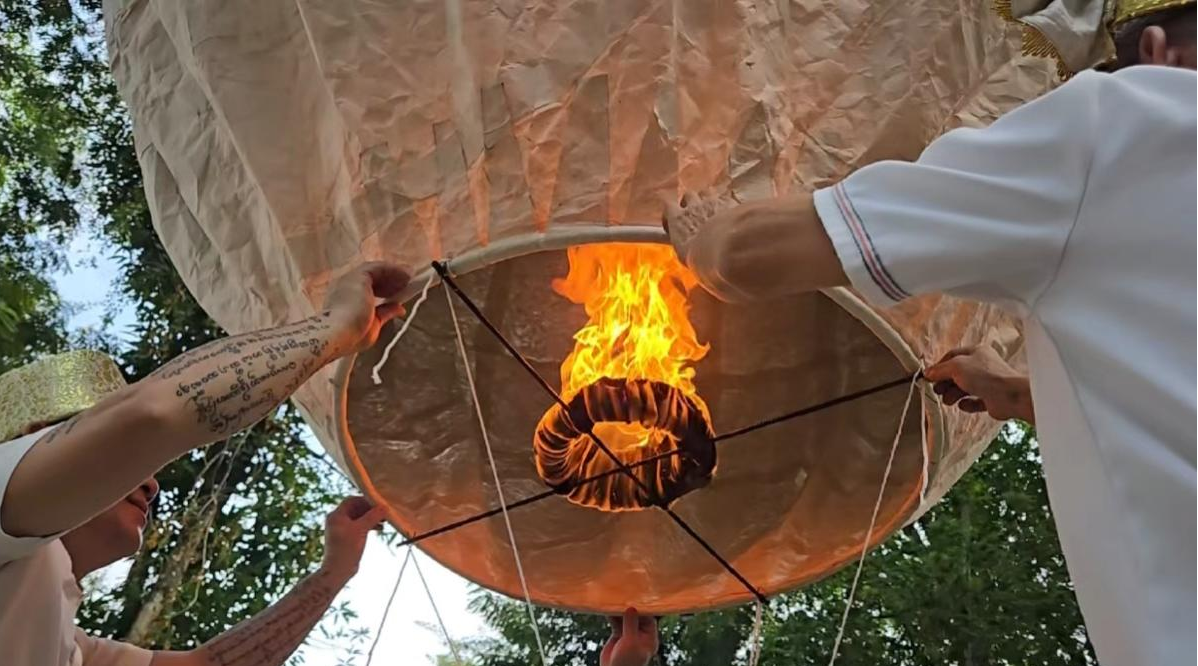 9月18日至19日上午,采集团队转场至景洪市嘎洒街道曼勐村,对傣族传统孔明灯制作技艺进行了全程记录。岩香罕带领徒弟展示了从选材、制作骨架到裱糊、组装的全套制作工艺,最终制成的孔明灯直径达2米,高5~6米,其巨大的灯体需多人协作方能扶稳升空。此次采集不仅详细记录了孔明灯的完整制作技艺,更凸显了其在傣历新年、开门节等节庆中承载美好祝愿的文化意义。团队通过数字采集工作,为这项傣族传统技艺建立了高质量数字档案,为后续传统技艺研究、传承与推广保存了关键资料。