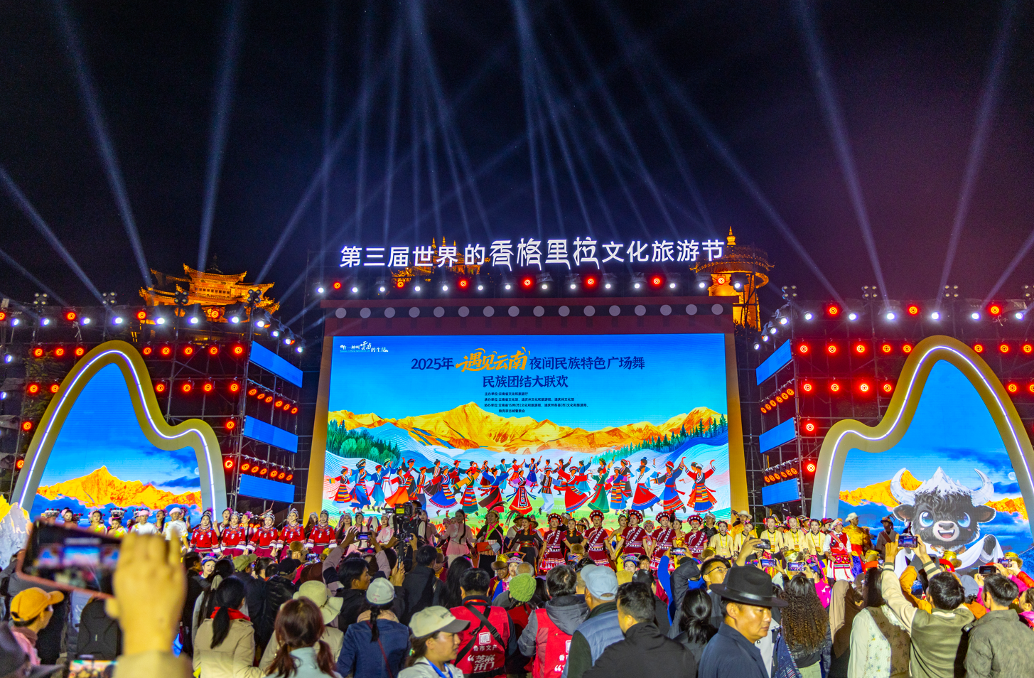 巡演落幕后,月光广场随即举行第三届世界的“香格里拉”文旅节开幕式,将活动氛围推向新高度。现场文艺表演精彩呈现,种类繁多的歌舞频频唤起观众对香格里拉的向往与热爱;更有迪庆优质旅游资源、非遗特色线路及“7+90天”延伸活动,让观众提前知晓更多文旅亮点;“今生情定G214”微短剧与主题曲的发布,以故事化、音乐化的形式,生动展现G214沿线文旅魅力。这些都极大强化了游客对香格里拉文旅体验的期待,点燃了全场观众对香格里拉的热情。