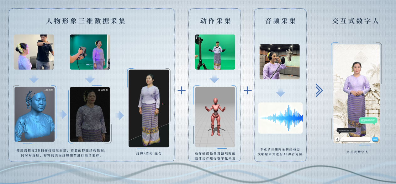 项目突破了传统采集的局限,构建了“全域覆盖、全维感知、全网融通”的数字采集体系,广泛应用3D扫描、动作捕捉、多光谱成像等先进技术,对民族服饰、纹样、舞蹈、音乐等元素进行高精度数字化采集,形成了涵盖高清图片、视频、3D模型、动作数据、数字音乐在内的高质量多模态数据集,实现了对民族文化资源的全息化建档与永久性保存,为后续的开发应用奠定了坚实的数据基石。