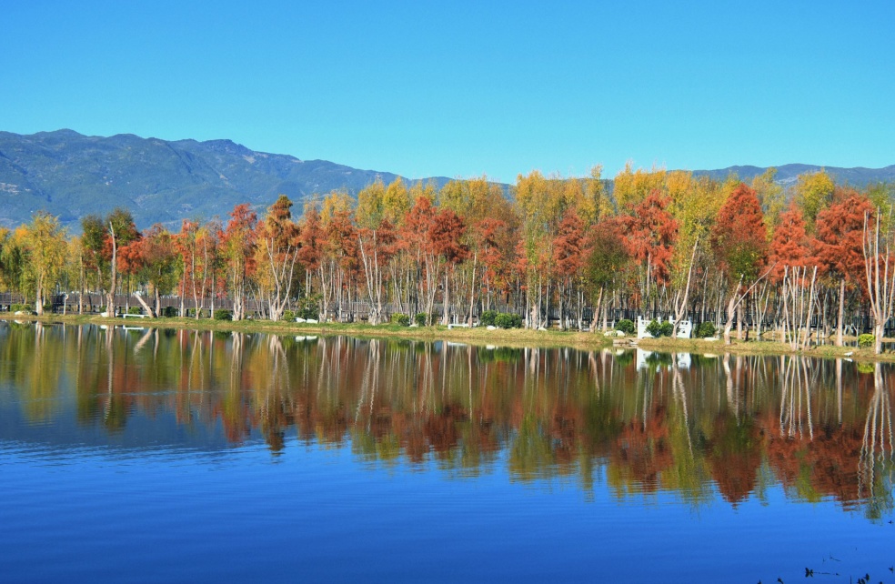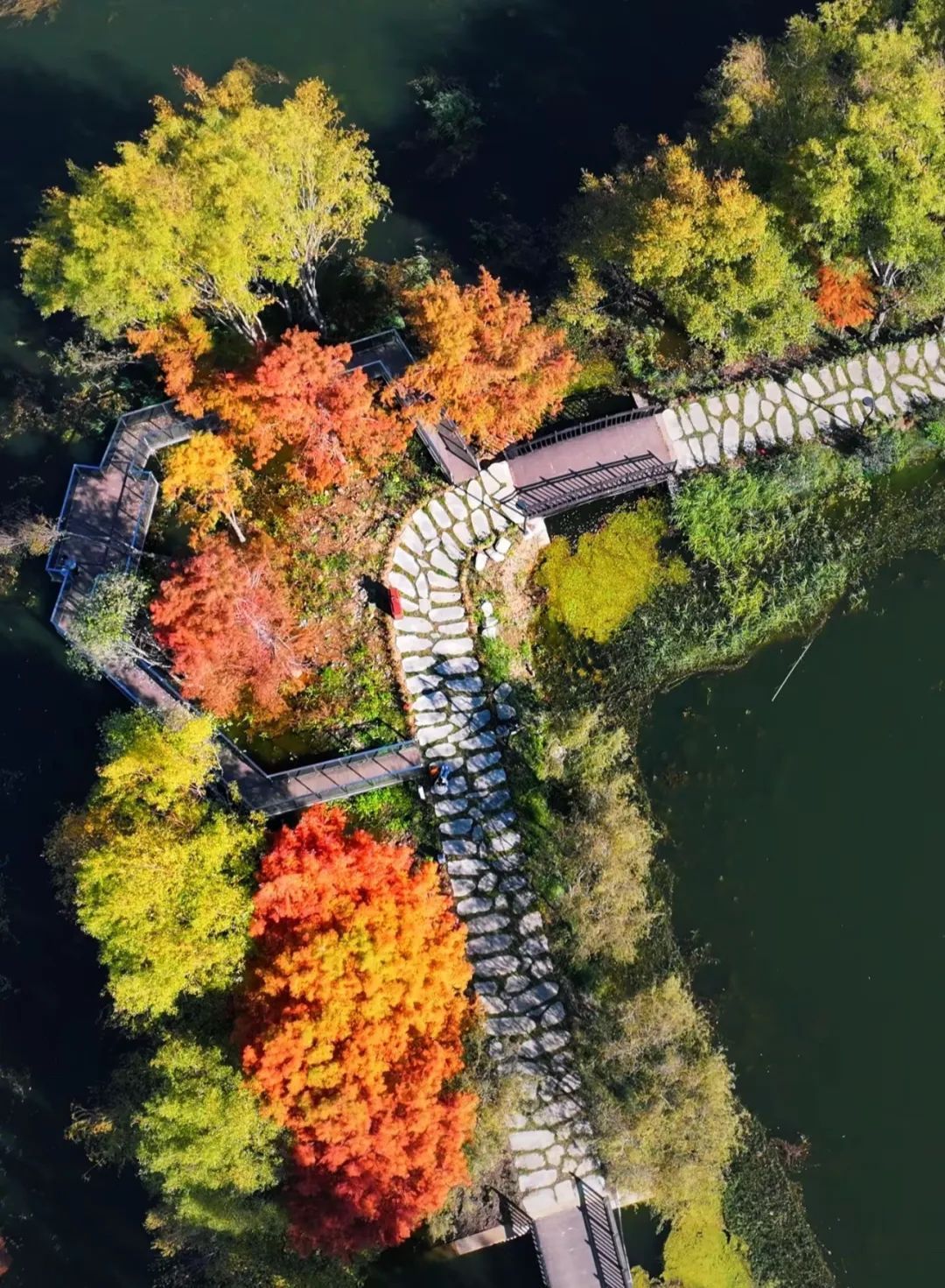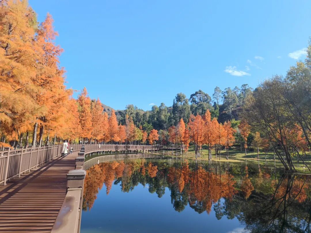 几片未及褪尽的翠叶与深红叶蝶旋着坠入水面