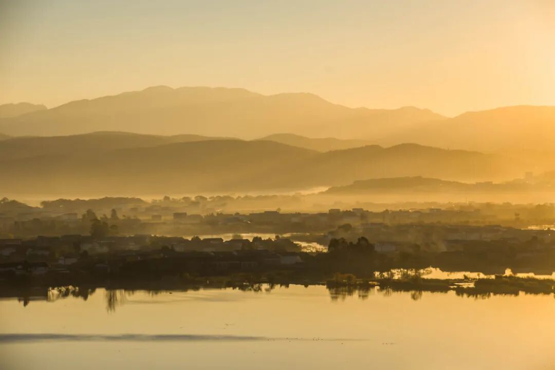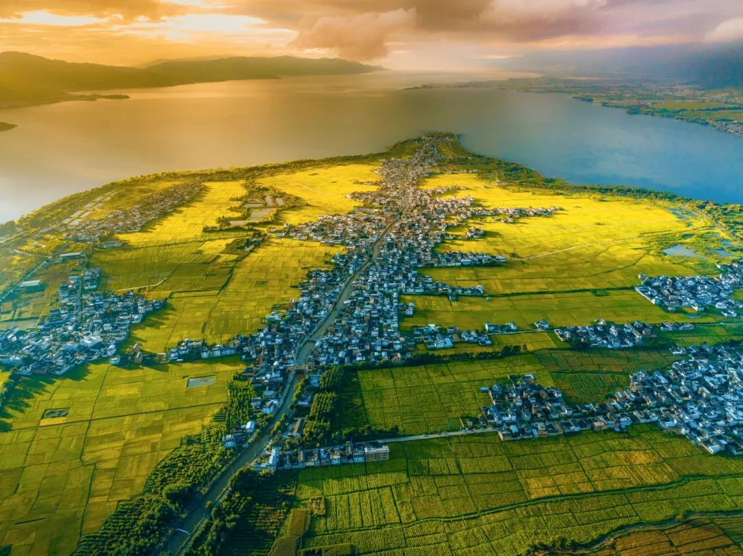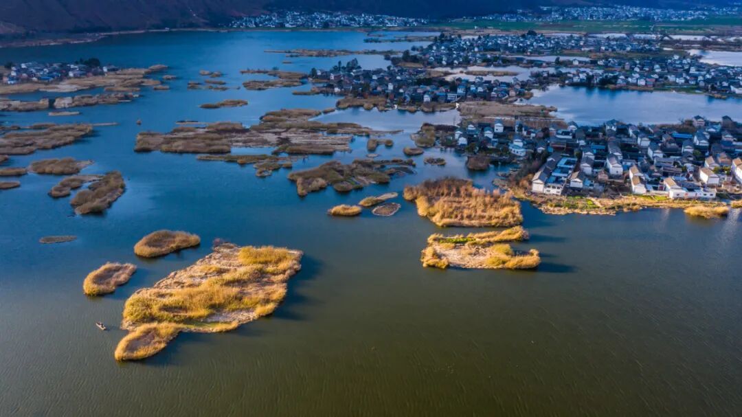翅尖挑起一层层泛着夕阳暖调的涟漪