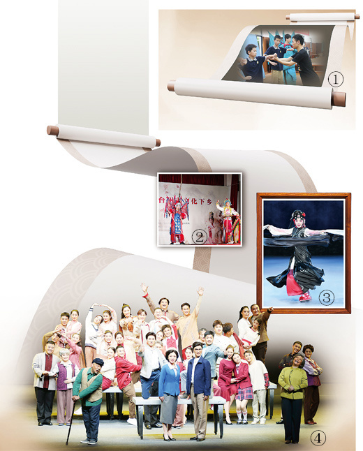 图①:剧团送戏进校园。 图②:剧团送戏下乡。 图③:《我的台州乱弹——经典折子戏专场》在国家大剧院演出剧照。 图④:台州乱弹《我的芳林村》在国家大剧院演出剧照。 以上图片均为浙江台州乱弹剧团提供