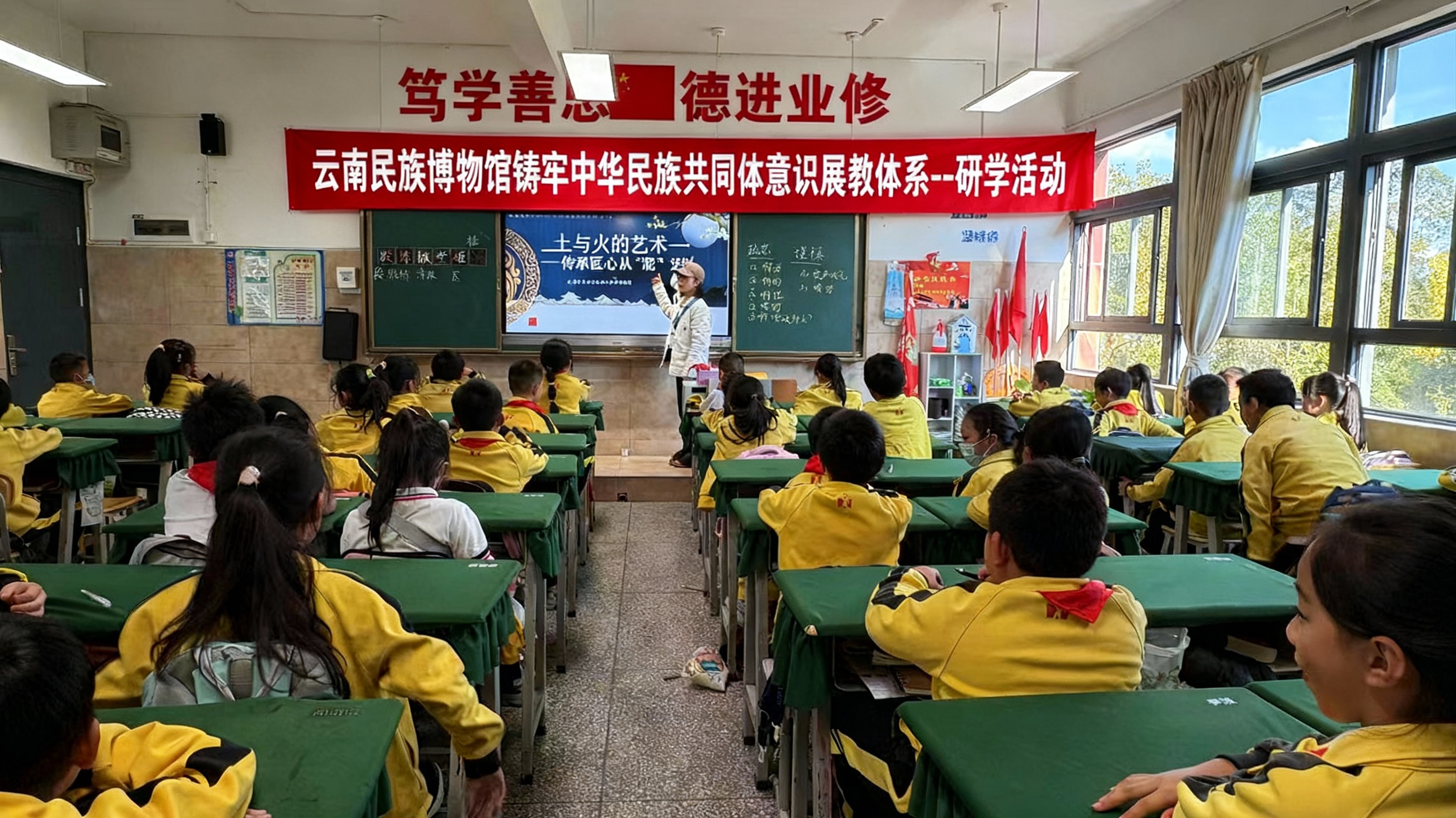 “看我做的陶罐!”“原来我们云南的陶器有这么多种类!”11月14日,昆明市五华区红旗小学布新校区的教室里满是欢声笑语,四年级近300名学生正专注地与泥巴“对话”。云南民族博物馆“铸牢中华民族共同体意识”展教体系跨学科融研学活动《土与火的艺术—传承匠心从“泥”开始》走进校园,用一场“看得见、摸得着、做得出”的陶艺盛宴,让民族文化在指尖流转,让匠心精神在童心扎根。