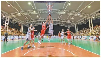 广东东莞,选手在莞篮“村BA”半决赛中。王敬新 摄