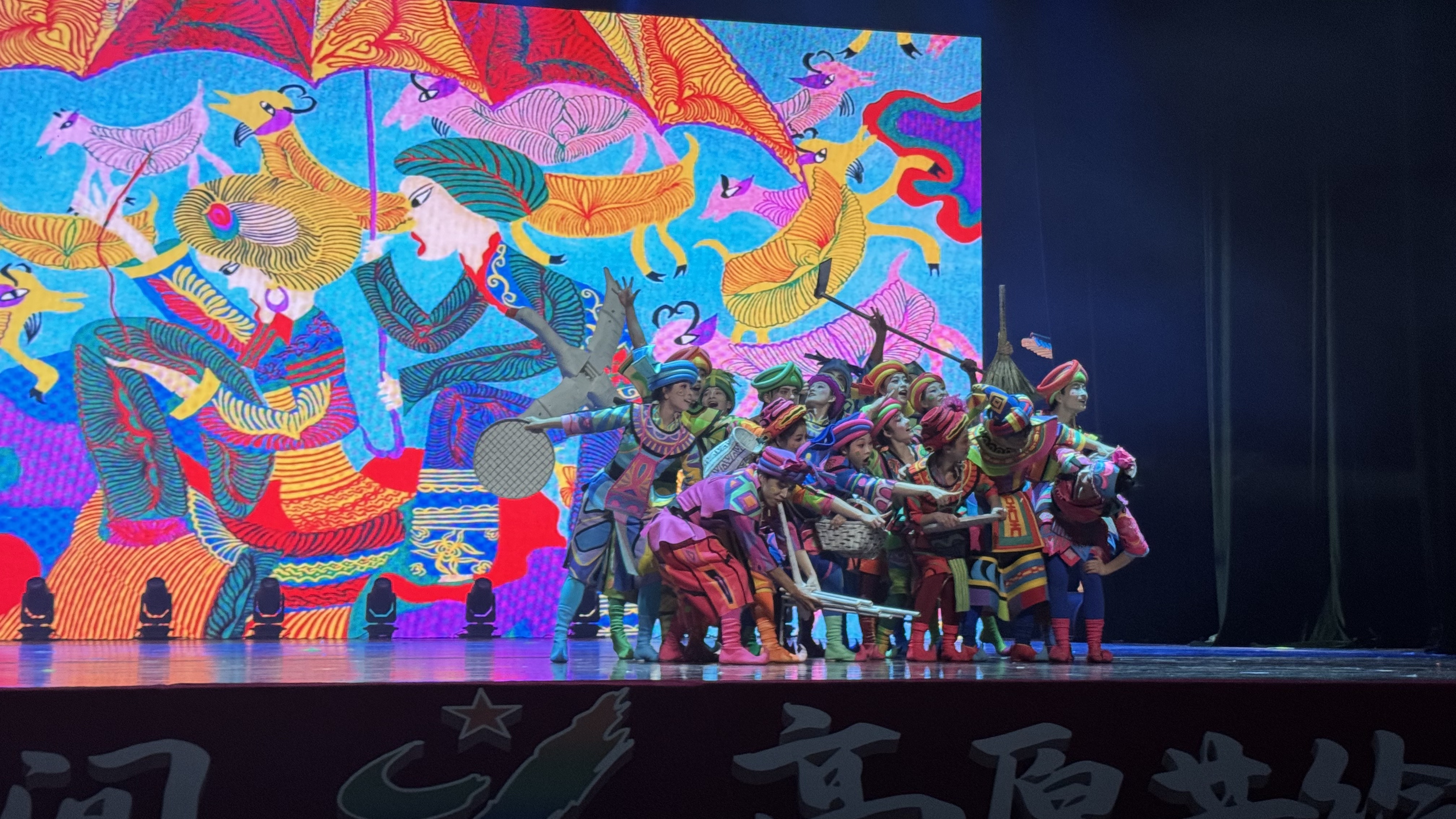 传统与现代的碰撞成为此次展演的一大亮点。布依八音《回家》以罗平村寨“猴群回归”为灵感,用牛骨胡、葫芦琴模拟自然之音,吟唱人与自然和谐共生的赞歌,夺得全国“群星奖”;迪庆州民族史诗歌舞剧《千年回响》以现代舞台重构千年故事,融入“香巴拉”传说,最终落脚于“人心相连、万物共生”的和谐愿景;德宏州《哦然未央》从景颇古歌中提取律动,融入当代审美;荣获“文华奖”的群舞《太平有象》以大象意象传递文化深意,引发现场持久掌声。压轴的广场舞《弹起弦子跳脚来》融合国家级非遗彝族左脚舞,将全场气氛推向高潮,其“全国群星奖”“彩云奖”双料冠军的荣誉实至名归。