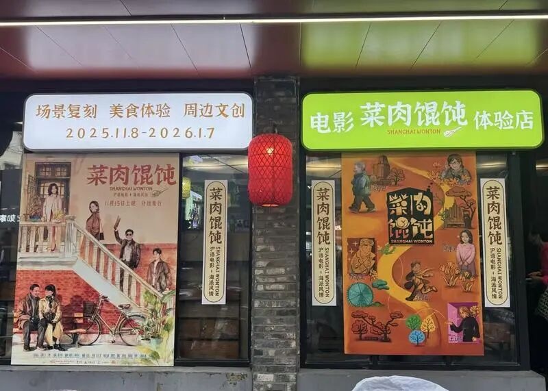 △随着电影上映,《菜肉馄饨》主题店开业,观众可凭票根享优惠。