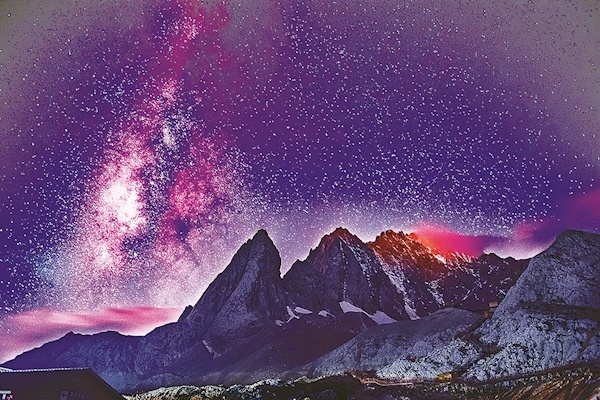 银河垂野静尘寰。玉龙雪山桃花坞牧场供图