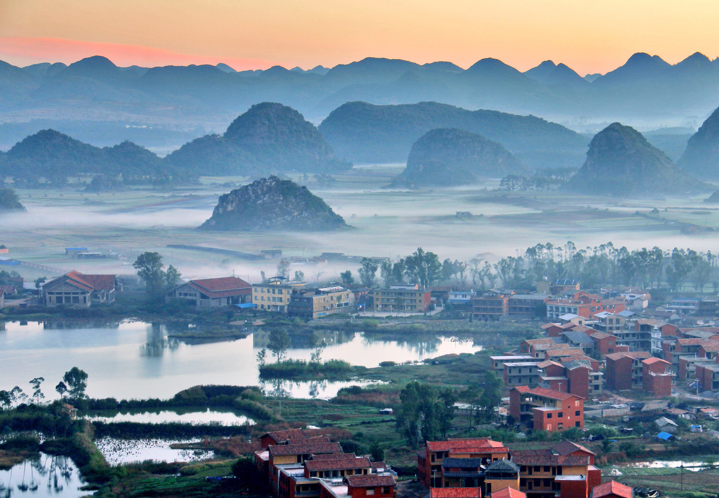 鸟瞰丘北县普者黑村初冬清晨 马卫忠 摄