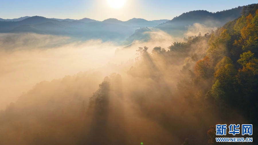 阳光透过晨雾(视频截图)。新华网发(昌宁县融媒体中心供图)