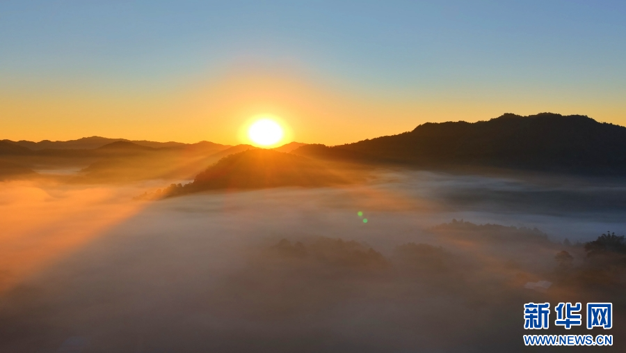 近日,云南省保山市昌宁县现晨雾映日出美景,云卷云舒间尽是灵动韵味,雾中日出绘就了冬日优美的画卷。(张思羽 杞玉萍 杨冲楷)