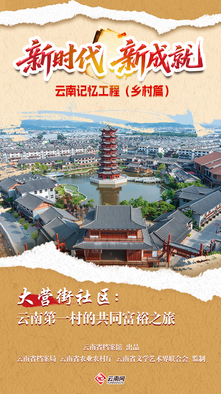 由云南省档案馆出品,云南省档案局、云南省农业农村厅、云南省文学艺术界联合会监制的《新时代新成就云南记忆工程 乡村篇》系列微视频正在播出。今天,推出第9集《玉溪大营街社区:云南第一村的共同富裕之旅》。