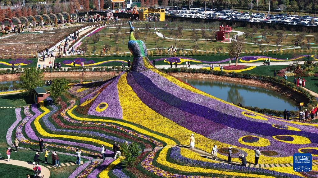 春节前,坐落于昆明市呈贡区斗南滇池湿地公园旁的七彩花海公园2月5日正式对外开放,公园围绕巨型孔雀花雕打造十大特色景观区域,成为滇池沿岸供市民游客赏花休闲的新去处。(梁志强)