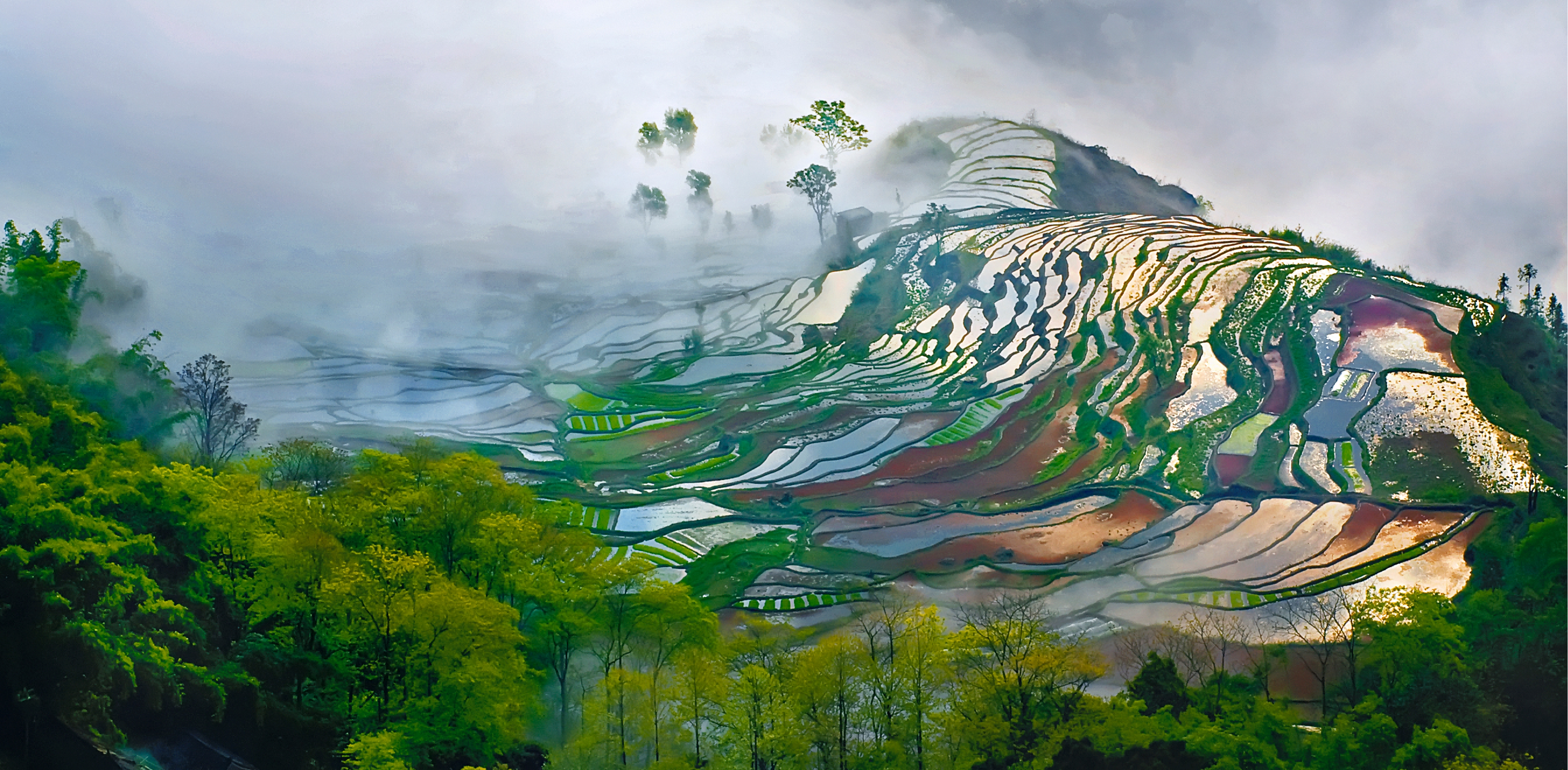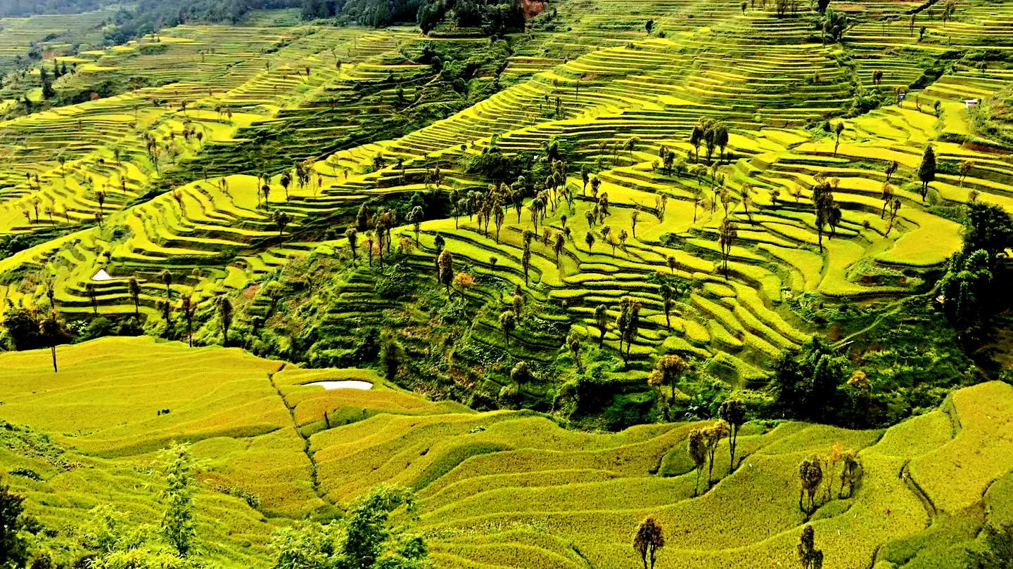 四季如画,是藏在时光里的浪漫与惊艳。春回大地,梯田蓄水丰盈,如万面明镜镶嵌山间,倒映蓝天白云、青山绿树,空灵澄澈;盛夏时节,秧苗遍野铺绿,层层碧浪随风翻涌,满目清新,生机盎然;金秋降临,稻浪鎏金溢彩,稻香弥漫山野,是大地最慷慨的馈赠,绚烂而温暖;隆冬时节,雾霭缭绕田间,水墨意境悠然尽显,素雅静谧,宛若仙境。四时之景不同,而美意无穷,一步一景皆是诗,一草一木总关情。