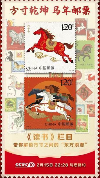 除夕守岁,吉章贺春!2月15日晚,央视CCTV-10《读书》节目暖心播出,以方寸邮票为媒,邀中国集邮有限公司(中国邮政文史中心)安全与宣教部副主任、中国邮政邮票博物馆研究馆员李亚静,清华大学美术学院教授、《丙午年》邮票第一枚设计者王红卫,资深平面设计师、《丙午年》邮票第二枚设计者赵恩重,走进北京邮票厂有限公司,解锁 2026 丙午马年生肖邮票的文化深意与创作匠心,在辞旧迎新的美好时刻,为观众奉上一席藏在方寸间的文化盛宴,让龙马精神伴万家喜迎新春。