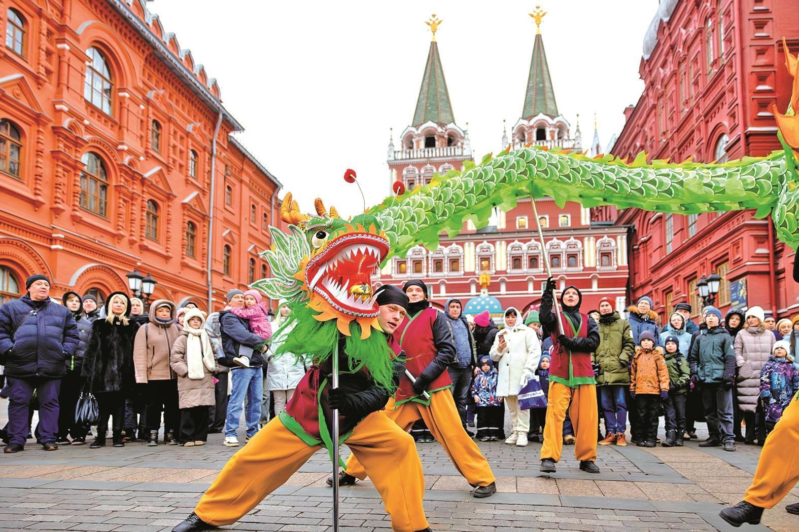 莫斯科街头的舞龙表演 莫斯科市旅游委员会供图