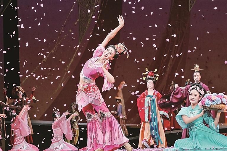 演员在甘肃敦煌大剧院表演大型民族舞剧《丝路花雨》。新华社发
