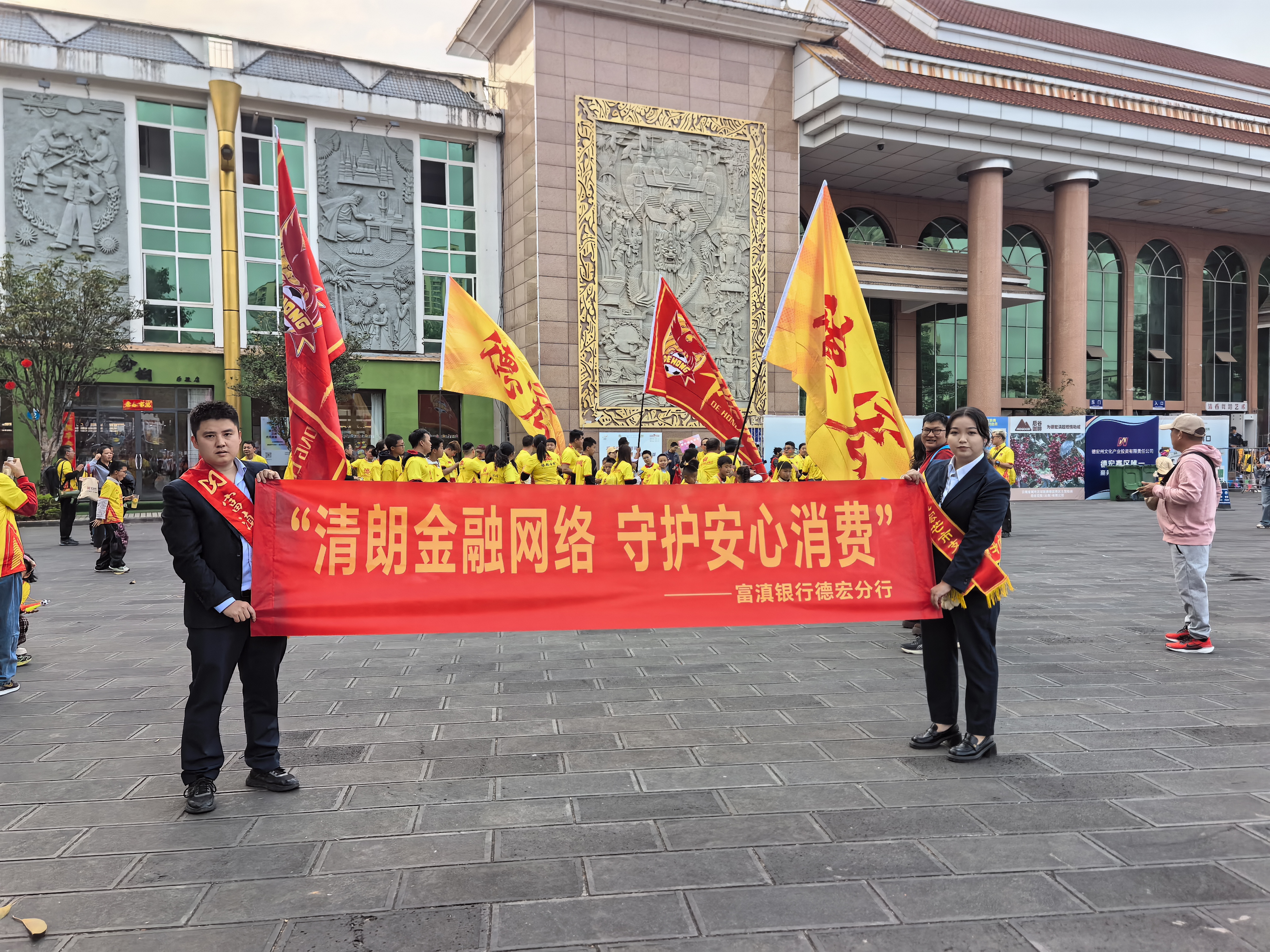 为深入贯彻落实“3·15”金融消费者权益保护教育宣传工作要求,切实提升社会公众金融风险防范意识与金融素养,着力营造清朗安全、规范有序的金融消费环境,国家金融监督管理总局德宏监管分局、中国人民银行德宏州分行的统一指导下,富滇银行德宏芒市支行紧扣“清朗金融网络 守护安心消费”主题,依托滇超赛事平台,创新宣传场景,集中开展形式多样、贴近民生的金融知识普及活动。