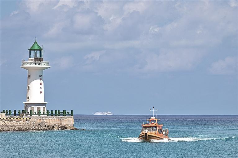 往返于海南三沙永兴岛与赵述岛的海上交通保障船于2025年1月7日正式开航。该船如同穿梭于两岛之间的“海上公交”,缓解了岛际交通不便的状况,极大便利了驻岛人员工作与生活。图为近日在海南三沙拍摄的海上交通保障船。新华社记者 蒲晓旭摄(蒲晓旭)
