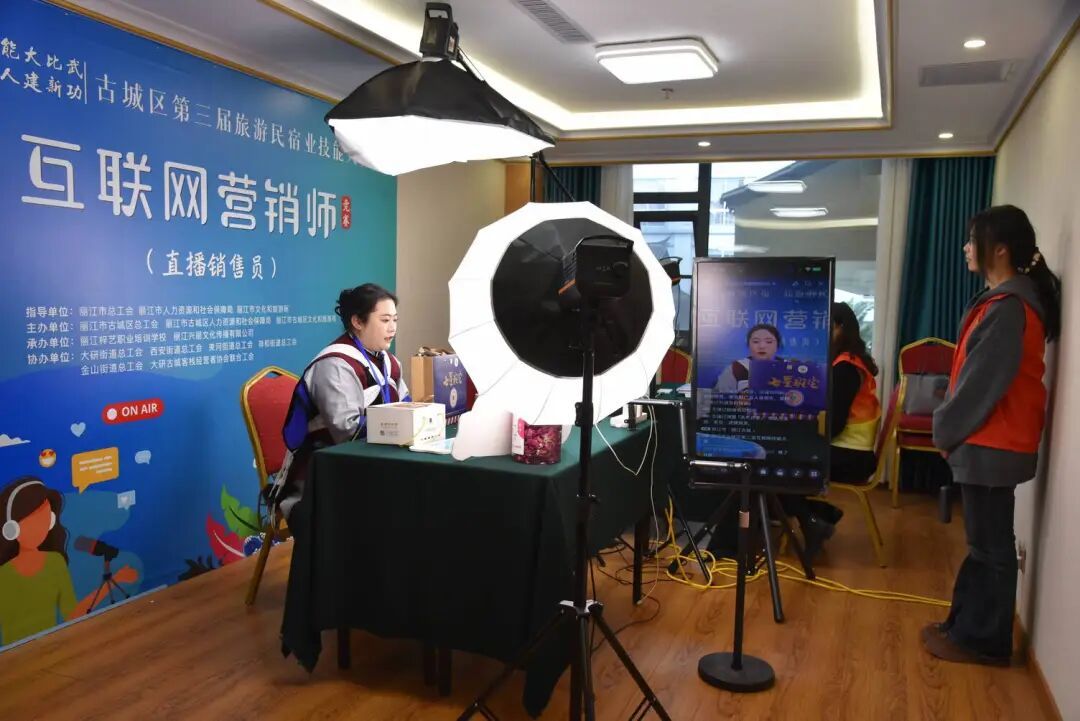 日前,丽江市古城区第三届旅游民宿业技能大赛在丽江宾馆开赛。本次大赛以“民宿技能大比武 产业工人建新功”为主题,由古城区总工会、区人社局、区文旅局主办,聚焦民宿管家和互联网营销师两大工种,为古城区文旅从业者搭建了技能比拼、互学互鉴的平台。
