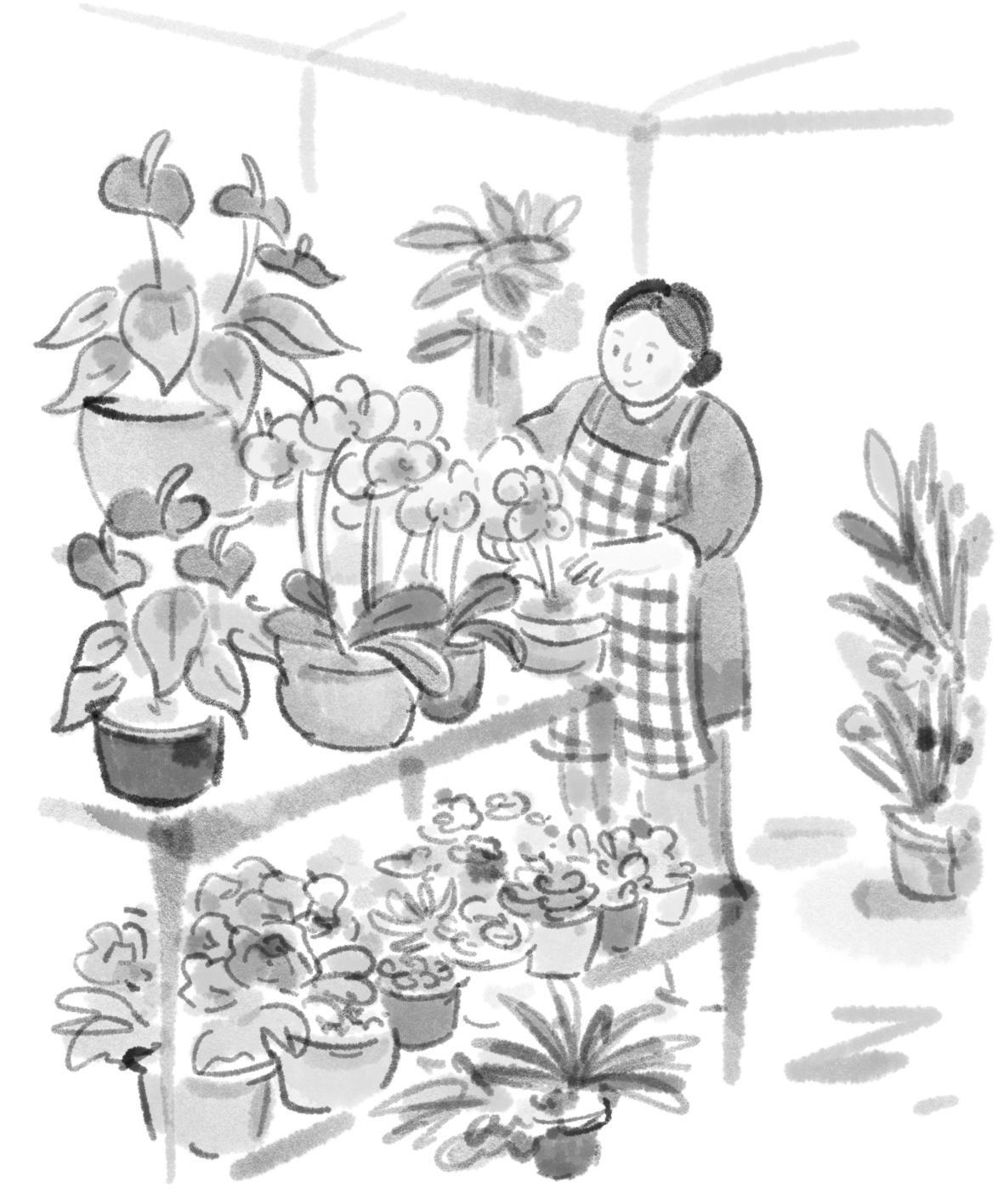 走出花棚,早春的阳光洒在身上,暖意融融。我一手抱着花盆,一手拎着其余的东西,脚步轻快,心中盈满了新的希望。(尹立欣)