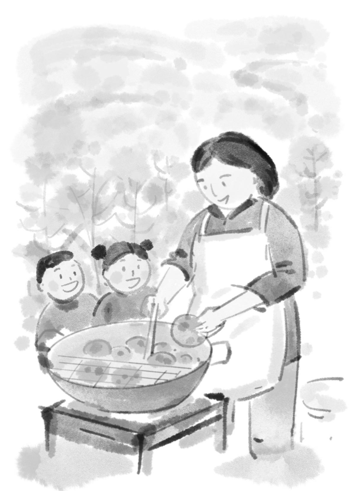 金黄酥脆的油粑粑在锅里翻滚,香气四溢,我忍不住拍下视频发在同学群里。不一会儿,群里热闹起来,异地的同学纷纷留言,称隔着屏幕便闻到了熟悉的香味。其中有一位绰号叫“24个油粑粑”的同学,更是感慨万千。一起上学的时候,每逢赶场,我们总爱跑到街上打牙祭。那时因家境清贫,又正值长身体的年纪,十八九岁的他,一次赶场竟一口气吃下24个油粑粑,从此便有了这个绰号。如今身在远方,油粑粑早已成了他梦里的乡愁滋味了。