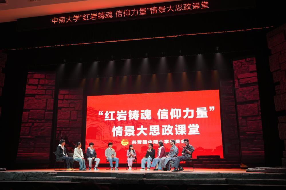 演出后,剧组设置情景大思政课环节,让演员、导演与师生互动交流。来自中南大学马克思主义学院的学生代表范淑顺说,这种沉浸式体验让他对初心与担当有了更深理解。“这种形式让思政教育方式向‘学生主动感悟’转变。”中南大学思政课教师李淼磊认为,情景互动让红岩精神在交流与共鸣中生根发芽。