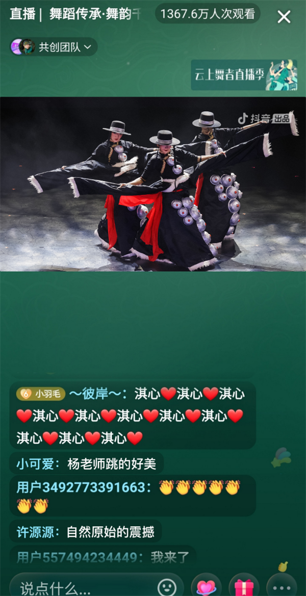 杨丽萍认为,直播间成为“新舞台”,舞者因此获得了“新收益”。以往线下演出的焦点往往在首席和主演身上,而在直播间,每个人都可以站到C位,不同风格的舞者都能被大家注意到。借助直播,许多舞者成了“舞蹈新明星”。