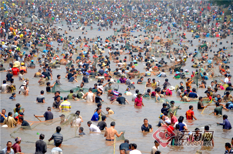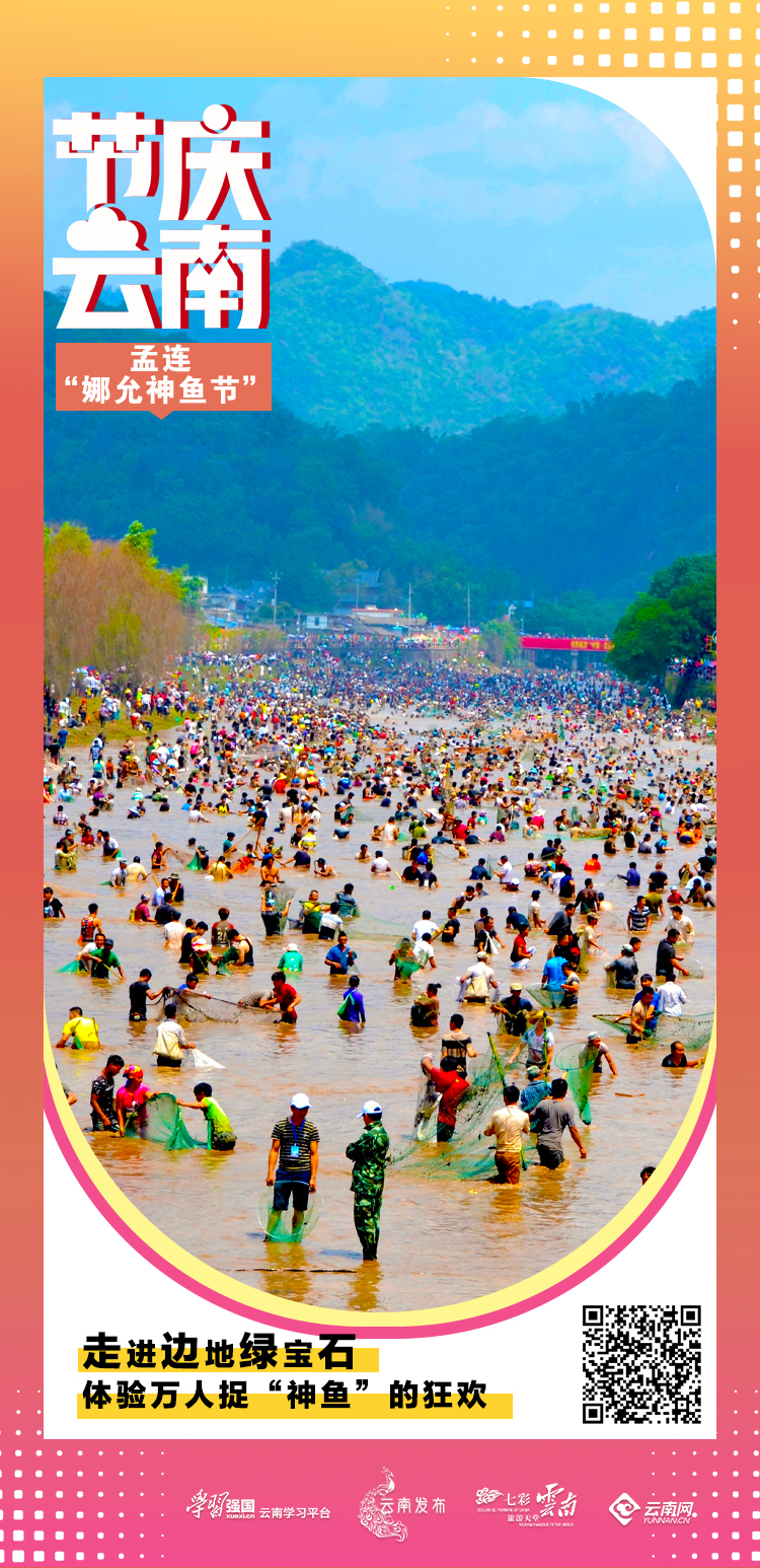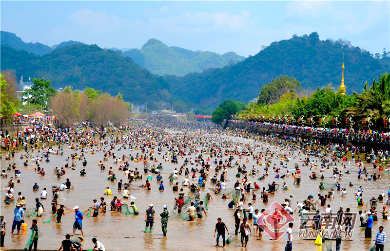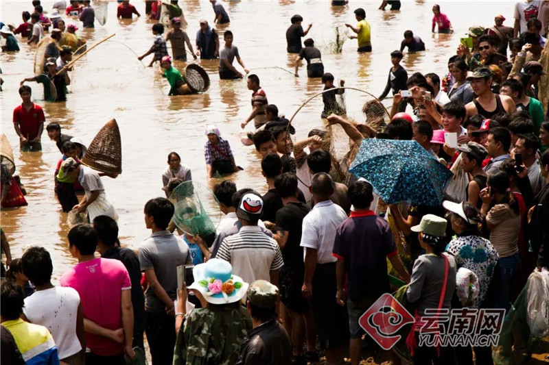 为了感谢“神鱼”的恩赐,也为了记住幸福时刻的到来,一到每年的四月,当地人就举行一个盛大的“神鱼节”,在这一天人们尽情地捕鱼狂欢并进行鱼类放生等活动,希望“神鱼”给人们带来源源不断的福气,也教育人们要保护“神鱼”,“神鱼节”也就一代代流传下来。而每年节日期间万人下河捕捉“神鱼”的活动,便成了娜允古镇边的一道壮观风景。