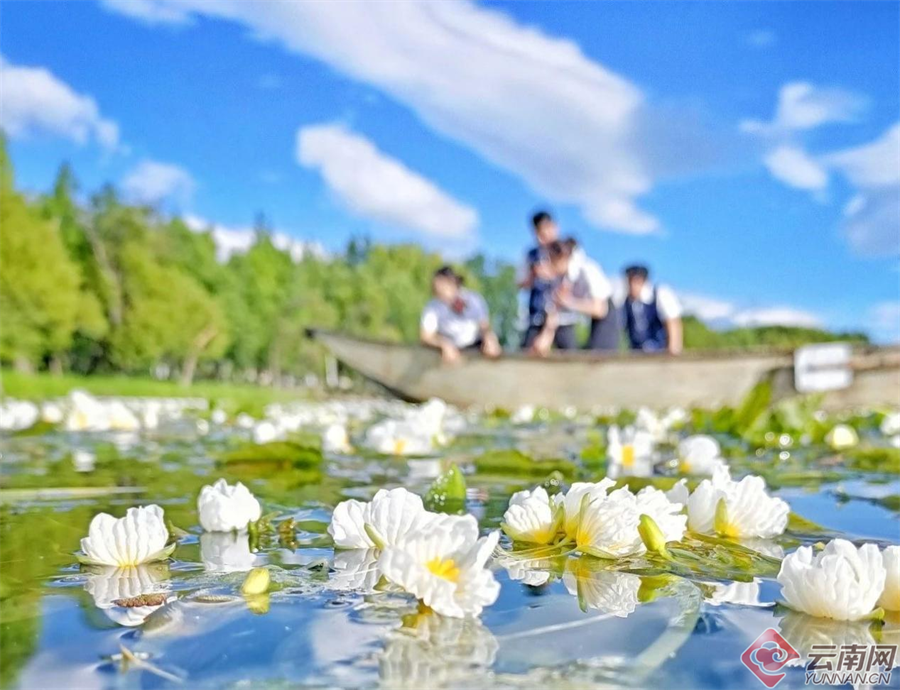 成片的海菜花在洱海水面盛放(杨继培 摄)