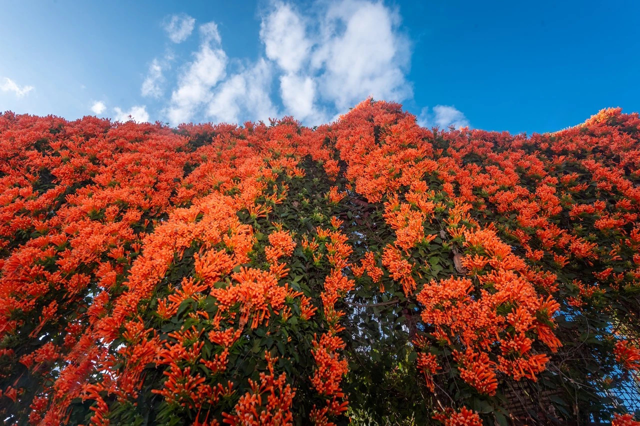 一道长达上百米的炮仗花墙