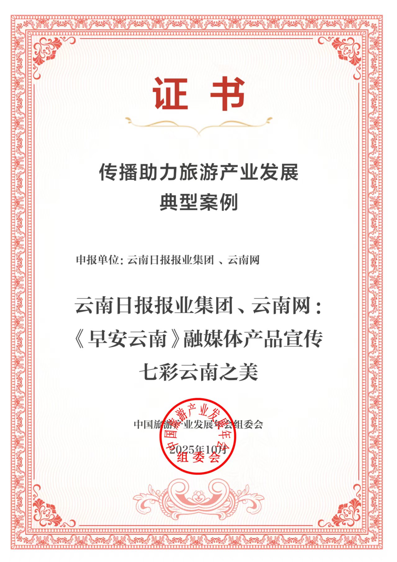 此次入选“2025中国旅游产业影响力案例”,是业界对《早安云南》传播价值与产业推动作用的权威认可,更是8亿次关注汇聚的里程碑。此前,专栏已多次获评云南省委网信办“精品网络正能量专题专栏”,并入选文旅部、国家广播电视总局“第三届全国旅游公益广告优秀作品(电视类)”,影响力持续获得高度肯定。